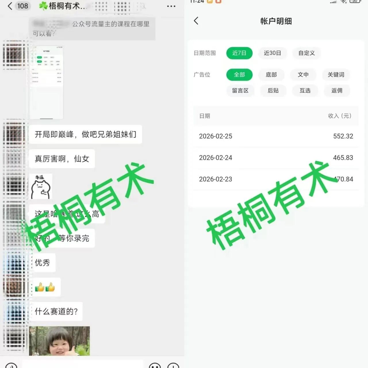 3月8日咱们梧桐有术社群会进行新年首次干货分享,公众号流量主的最新玩法。熟悉我的老粉丝都知道,咱们社群已经陪大家走过3年,这3年里,咱们持续挖掘各类低门槛搞钱渠道,更新互联网新玩法,从最初的基础变现,到现在结合AI高效放大收益,就是希望帮更多普通人,抓住互联网的红利,轻松获取额外收入,不用再为碎银几两熬夜奔波。其实互联网对所有人都是公平的,虽然说做项目有的人起步快,有的人起步慢,但是只要肯学肯做,结果都不会太差。 很多人总说“搞钱难”,其实是没找对方法。社群里的很多同学,大多数加入前还是副业小白,不知道从哪下手,加入后跟着社群分享的课程系统性的学习、落地,慢慢都找到了自己的搞钱方向,有了稳定的额外收入,有的甚至辞掉枯燥的工作,实现了副业自由。 给大家看两个真实案例,更有说服力,每一个都是咱们社群同学实打实的成绩。这位位同学,加入社群3个月,跟着咱们学习公众号流量主的新玩法,从0起号,慢慢摸索,现在月流量主收入稳定在23201,单日最高收入1549,相当于很多人半个月的工资,这种收入,只有互联网做到。还有宝妈艾琳,平时要照顾孩子,时间碎片化,她跟着社群方法开通流量主,仅仅3天,就到手1488,平均每天552,不用出门,不用加班,利用孩子睡觉的时间就能操作。谁说宝妈在家只能手心向上?通过互联网在家照样有收入,给自己和孩子更好的生活,这才是底气。 很多新手会问,公众号流量主早就有了,现在做还能赚钱吗?答案是:能,而且比以前更容易,因为门槛降低了,玩法也升级了。 现在公众号流量主,相比2025年门槛低了很多,只要有100个粉丝,之前是500粉就能开通收益权限,不用你有多高的文凭,只要你按照课程学习,学会使用AI工具,不用粉丝破万,只要有阅读量,就实现“有阅读就有钱赚”咱们给大家总结了一套提高广告单价的方法,核心就是选对高单价赛道——比如中老年、金融、职场、教育这些赛道,广告单价比普通赛道高1-2倍,收益自然翻倍。 这么给你说吧:同样是1000阅读量,普通娱乐赛道单价大概5-8元,一天1000阅读,收入也就5-8元;但如果选中老年赛道,单价能达到15-20元,1000阅读就能赚15-20元,要是阅读量破5000,一天就能赚75-100元,要是像那位同学一样,单篇阅读破万,一天收入轻松过千,这就是高单价赛道的魅力。前几天社群有个同学,公众号阅读量只有18,但是流量主收益却有66,另一个同学阅读44,流量主有138,这些都是赛道选择和提高单价的方法(当然你进了社群这些方法都是毫无保留交给你),哪怕阅读少,选对方法也能赚得不少。 比起传统生意,公众号流量主真的太香了。很多人想做副业,第一反应是送外卖、跑滴滴、摆摊、做服务员,这些都是纯体力活,我之前在工地干的时候,风吹日晒,熬夜奔波,一天干下来,累得腰酸背痛,收入也才几百块,而且越做越累,没有成长空间。 但互联网副业不一样,做公众号流量主,只要有一部手机、一台电脑,随时随地都能操作,每天花半小时,更新一篇文章,不用打卡,不用加班,兼顾家庭和工作的同时,还能稳步提升收益,而且做得越久,粉丝越多,收益越稳定,后期甚至能实现被动收入。接下来,给新手们拆解具体的操作流程,一步一步教你落地,全程零门槛,跟着做就能上手。不用纠结个人号还是企业号,新手先从个人号做起,注册时先找3-5个同赛道的对标账号,参考他们的定位,然后确定自己的赛道,准备好公众号名称和简介,名称要贴合赛道,简介要清晰,让别人知道你是做什么的,能提供什么价值。 重点深耕高单价赛道,除了前面说的中老年、金融、职场、教育,还可以选择情感、明星娱乐等流量大、单价高的赛道,新手建议专注一个细分赛道,不要贪多,垂直深耕才能吸引精准粉丝,提高广告单价。社群里给大家整理了详细的起号流程,跟着流程走,能大大提高起号成功率,不用自己瞎摸索,节省时间成本,新手也能快速起号,积累第一批粉丝。不用自己绞尽脑汁写文章,新手可以多刷对标账号,看哪些选题更容易爆,多参考一些低粉爆款的类型,你的内容也才更容易起来;如果不会创作,就用AI辅助,让AI生成文章初稿,然后人工润色、排版,调整语气和细节,确保内容优质,再发布,每天更新1篇,半小时完全足够。 这里重点说一下AI创作,很多人担心用AI会被平台限流,其实不用怕。现在AI技术已经很强大,几分钟就可以生成一篇新的文章,市面上很多爆款文章,甚至10W+爆文,其实都是用AI创作出来的,现在的AI已经可以写出超越人类的文章内容了。平台真正排斥的是批量生成的低质内容,只要咱们对AI生成的内容进行人工润色,加入自己的观点和细节,符合自己的写作逻辑,口语化表达,再做个精美排版,平台不仅不排斥,还会正常推流。总之做公众号流量主,不管是你自己写文章,还是用AI辅助创作,核心都是创作出“优质内容”,只有优质内容,才能吸引粉丝,获得高阅读,才能出爆文、赚高收益。 这个副业,不用你有高学历,不用你有丰富的互联网经验,每天半小时,用AI辅助,新手也能快速上手,从每天几十块,慢慢做到每天几百、上千块。互联网搞钱,从来不是靠蛮力,而是靠方法,找对方向,选对玩法,普通人也能轻松实现副业增收。 2026让我们一起抓住这个低门槛红利,一起拿到互联网的第一桶金!